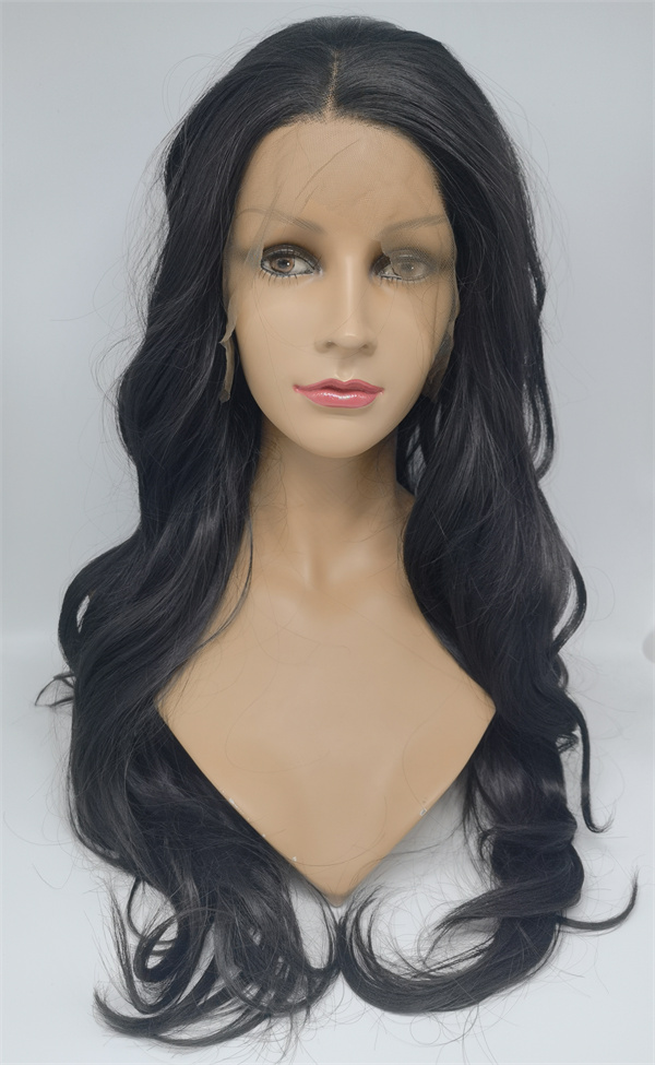 High temperature dark brown color  beautiful wavy synthetic lace front wig shinewig